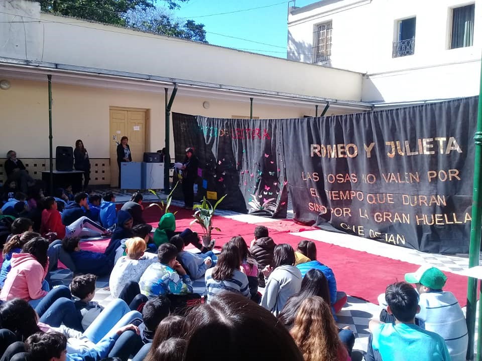 Esta obra contó con la participación de estudiantes y docentes en tareas actorales, de narración, de sonido y musicalización, de vestuario y escenografía, de guionado y dirección. Romeo y Julieta contaron su historia en el patio de la Escuela ante toda la comunidad educativa. En este proceso se fueron generando nuevos lazos con los diferentes actores, desde los cuales realizamos un abordaje desde la perspectiva ESI.
